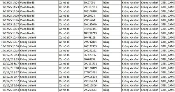 Giai đoạn ghi nhận vi phạm qua camera AI diễn ra trong hai ngày liên tiếp từ 9 đến 10 tháng 12 năm nay, tập trung tại các tuyến đường chính trong nội thành Hà Nội. Việc lựa chọn thời gian này nhằm thử nghiệm tính ổn định của hệ thống cũng như đánh giá mức độ tuân thủ luật giao thông của người dân vào thời điểm đông đúc cuối năm. Kết quả cho thấy camera đã ghi lại nhiều trường hợp vi phạm đáng chú ý để xử lý tiếp theo.