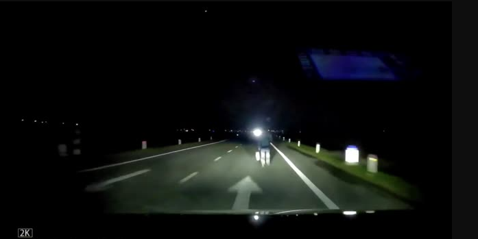 Camera hành trình của một chiếc xe ô tô di chuyển trên quốc lộ đã ghi lại hình ảnh một người đi bộ bất ngờ băng qua đường ở đoạn gần Cầu Bồ Sơn lúc trời tối mịt. Hành động này diễn ra đột ngột khiến tài xế xe phía sau phải phản ứng nhanh chóng để tránh va chạm. Qua video, ta thấy rõ sự chủ quan và thiếu quan sát của người đi bộ trước dòng xe đang lưu thông với tốc độ khá cao.