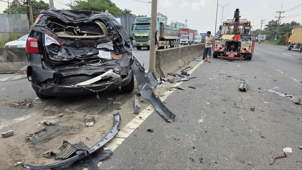 Hiện trường vụ tai nạn cho thấy cảnh tượng hỗn loạn với nhiều chiếc xe bị biến dạng nghiêm trọng. Đặc biệt, dải phân cách giữa hai làn đường đã bị tông vỡ cục bộ, tạo điều kiện cho một trong những xe con lao sang bên kia đường. Các phương tiện nằm rải rác trong phạm vi rộng, ảnh hưởng trực tiếp tới lưu lượng giao thông và an toàn của những người tham gia.